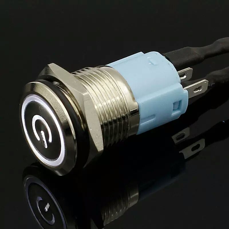 Botão Liga Desliga 16mm LED Branco 12/24v Com Trava ( Retenção ) Símbolo POWER